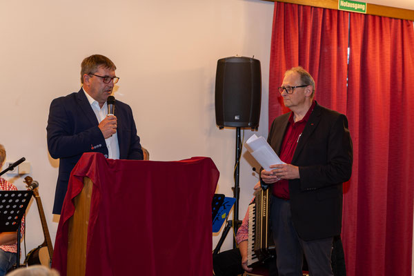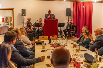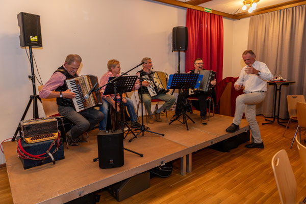 Für den festlichen, aber auch zünftigen Rahmen sorgte die „Sang und Klang Musi“, die mit ihren stimmungsvollen Klängen eine besondere Atmosphäre schuf. Der süffige Wein wurde von der Weinquelle Ranna geliefert und der Flammkuchen wurde von Christian und Lukas Edl mit Team gemacht. Der Flammkuchenboden, originaler Elsässer Boden wurde von der Manufaktur Fernands aus Sasbach/Baden gesponsert. Für Nicht-Weintrinker gab es natürlich auch wieder den süffigen Jubiläums-Trunk.
