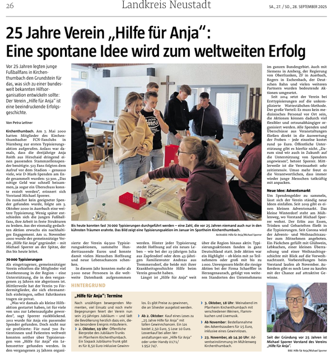 Der Kirchenthumbacher Pfarrsaal war fast bis auf den letzten Platz gefüllt, als Michael Sporrer, 1. Vorstand und Gründer von Hilfe für Anja e. V., die Gäste herzlich begrüßte. Schon beim Betreten des Saals war zu spüren, dass dieser Abend etwas Besonderes werden würde – ein Abend voller Erinnerungen, Emotionen und gelebter Nächstenliebe. Unter den zahlreichen Ehrengästen befanden sich Landrat Andreas Meier, die Bürgermeister Ewald Plößner, Alexander Goller, Johannes Schmid und...